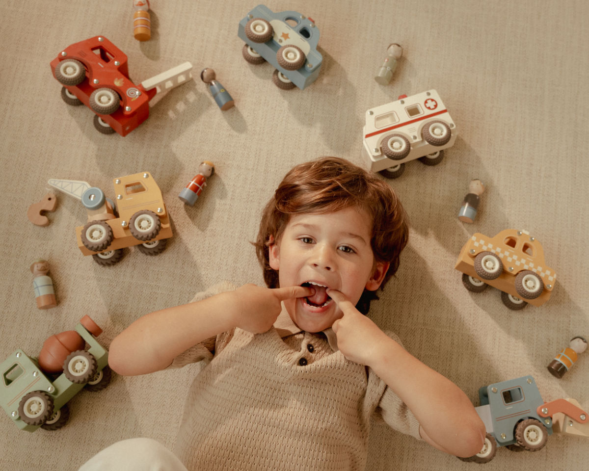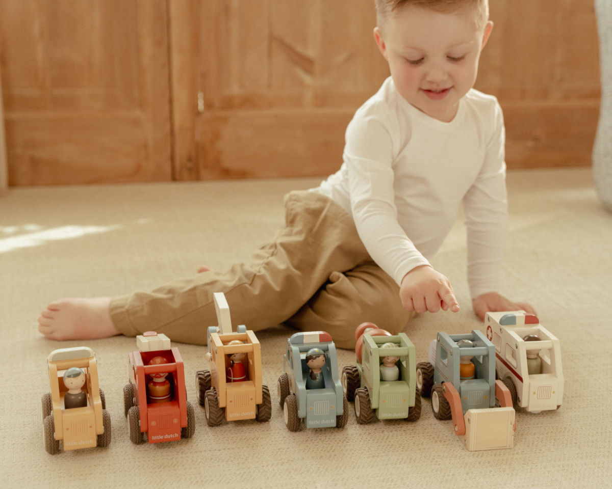 Entdecke den ganz neuen Fuhrpark von Little Dutch! Ob Bagger, Kranwagen, Betonmischer oder Polizeiauto - mit den niedlichen Fahrzeugen für die Kleinen ab 18 Monaten entsteht eine Fantasiewelt im Kinderzimmer, die immer wieder zu neuen Spielideen einlädt.