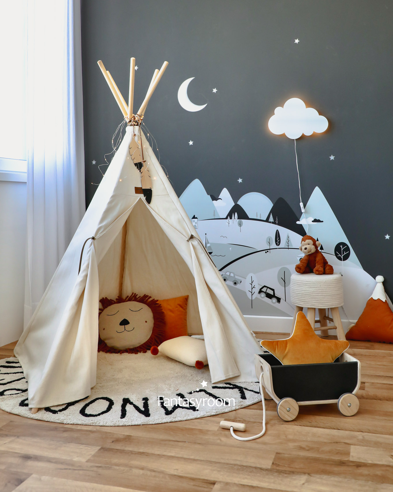 - Ist das Zimmer nicht groß genug um ein Tipi dauerhaft aufzustellen, kann es einfach weggeräumt werden