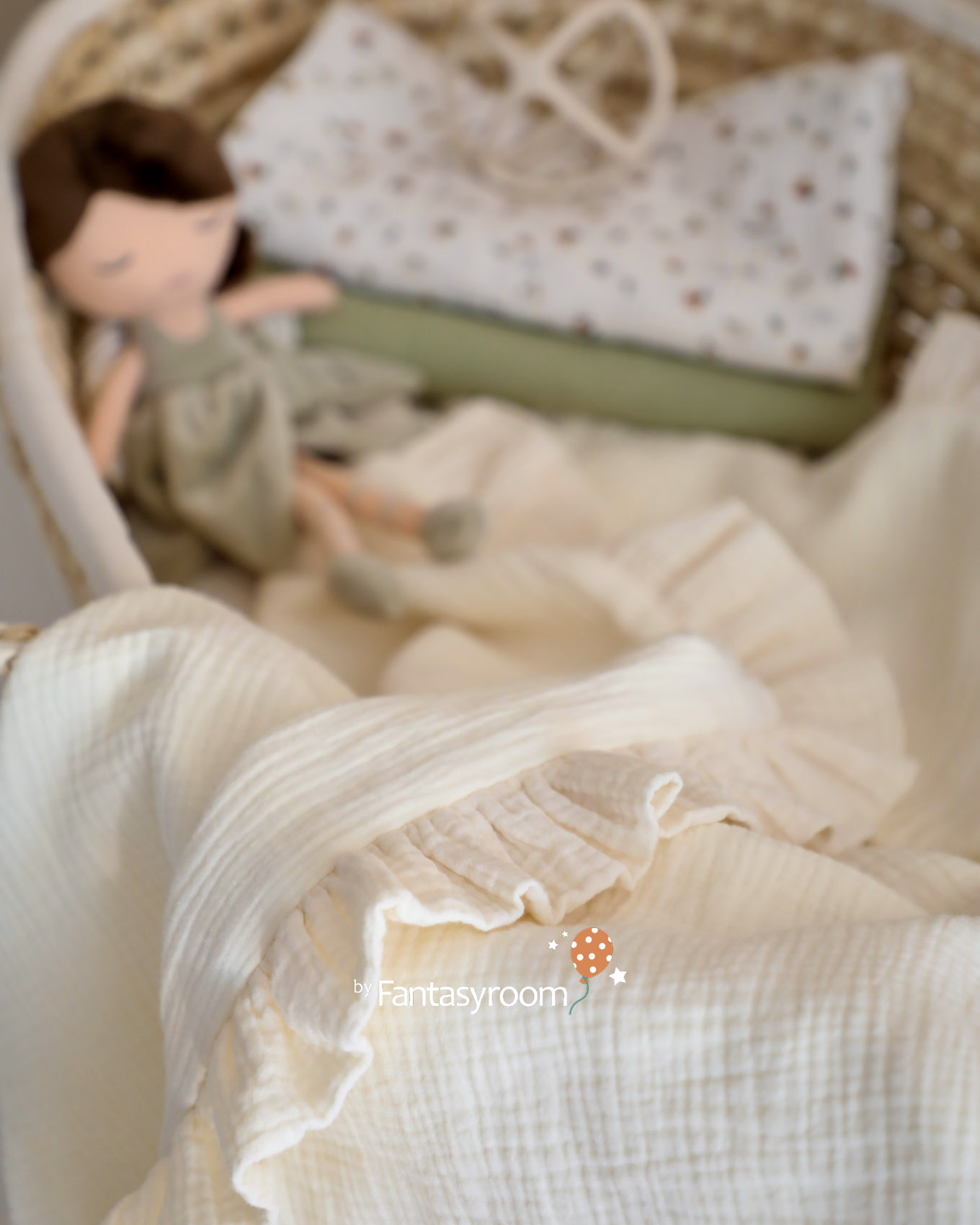 Kuschelweicher Musselinstoff aus reiner Baumwolle in warmem Creme, in einer fluffigen, voluminösen Qualität, die mit jeder Wäsche immer weicher wird. Perfekt für Betthimmel, Bettwäsche, Kissen, Deko oder Kleidung zum Selbernähen!