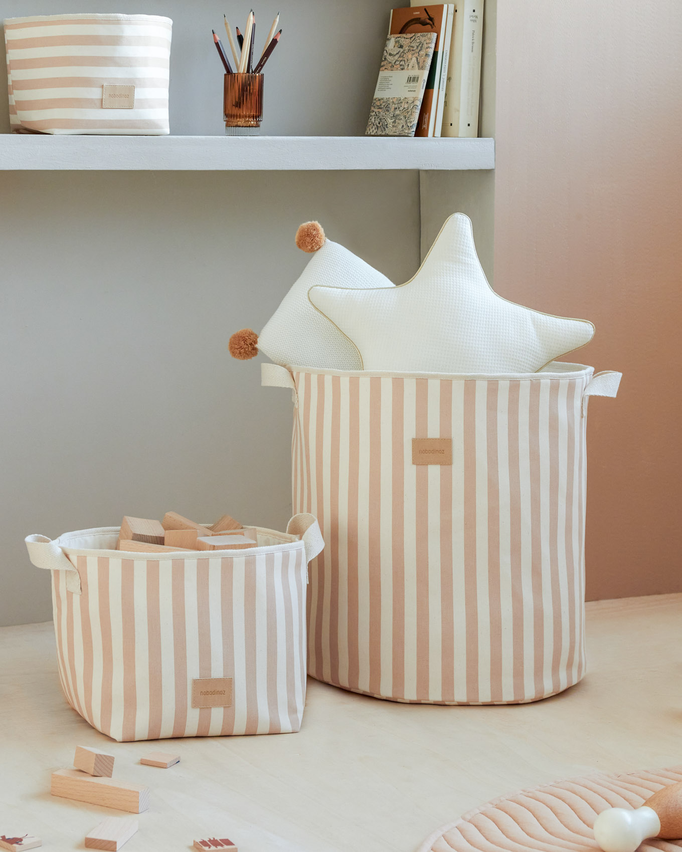 Schöne Körbe und Kisten sind eine tolle Spielzeugaufbewahrung, die ihren Reiz auch nach Jahren nicht verliert. Die Körbe können später für Zeitschriften, Bücher oder Handwerksarbeiten genutzt werden, wenn sie als Spielzeugaufbewahrung nicht mehr gebraucht werden. Praktisch in der ganzen Wohnung! Solche Körbe und Kisten gibt es z.B. von Kidsdepot, Bloomingville oder Liewood.